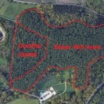 Forest school practitioners are advised to avoid using the area of woodland at St Ives known as Betty’s wood – see map below. The Woodland Management team at Bradford Council consider that following the felling of the larch last year, that previously shielded the pine trees, they are now more susceptible to movement and falling so the area should remain out of use for the foreseeable future. There are children’s dens in that area so please pass on this information to families who visit the estate